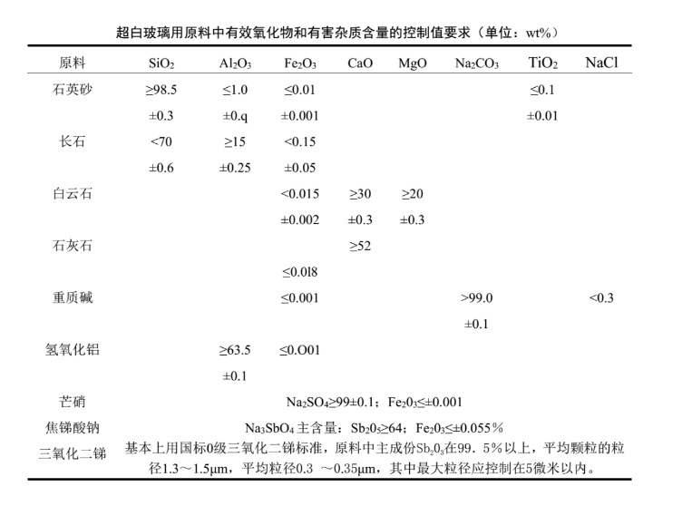 超白玻璃用石英砂質(zhì)量指標(biāo)要求